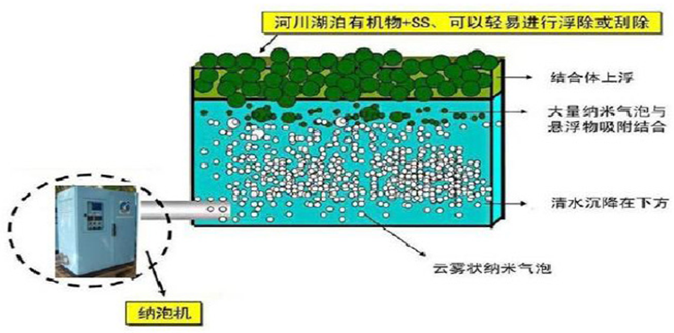 納米氣泡水體透析技術工作原理 1、快速而持久的增加水體溶氧量,增加好氧生物活性; 2、產生大量負氧離子,殺滅水體厭氧細菌及藻類; 3、負電荷納米氣泡絮凝固體溶解物和化學物質上浮; 4、負離子降解水體底泥,切斷水體黑臭根源; 5、形成生態鏈,完成水體自我修復。 The working principle of the nanobubble water dialysis technology 1, increase the dissolved oxygen concentration and aerobic biological activity in a fast and persistent manner in order to improve activity of aerobic organism; 2, produce large amount of negative oxygen ion, kill anaerobic bacteria and algae in water; 3, nanobubble with negative charge will make solid solubility and chemical substances flocculate and go up; 4, anion may degrade sediment in water body and cut off the black smelly water source; 5, form eco-system and complete self-repairing of water body. |